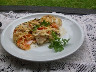 - Поръсих със сол и съвсем малко пипер, защото в сметановия сос се добавя още пипер.