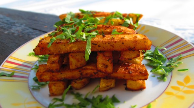Много често се случва да се чудя как да разнообразя гарнитурата към предвиденото ястие и останах много доволна от бързото приготвяне на тези картофени пръчки.