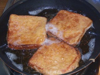 - Докато ястието се задушаваше във фурната, разбих две яйца и изпържих филийки от бял тостер хляб, като предвидих по една на порция.