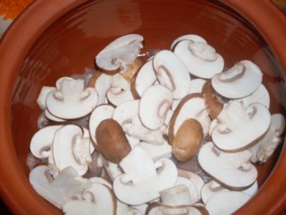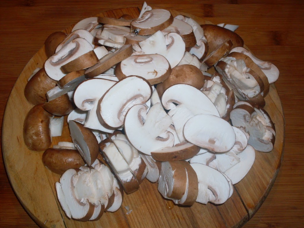 - Измих и почистих гъбите. Нарязах ги на филийки.