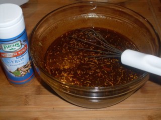 - В подходяща купа се изсипва олиото. Смесва се с подправката за гирос и се разбива хубаво.