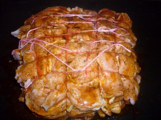 - Връзвате конците. Аз за всеки случай добавих още конци и се получи стегната топка от месо.