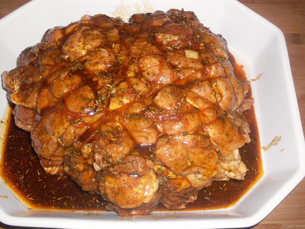 - Опаковах с фолио за свежо съхранение и оставих в хладилника за 24 часа. Така месото поема хубаво вкуса на подправката и лука.