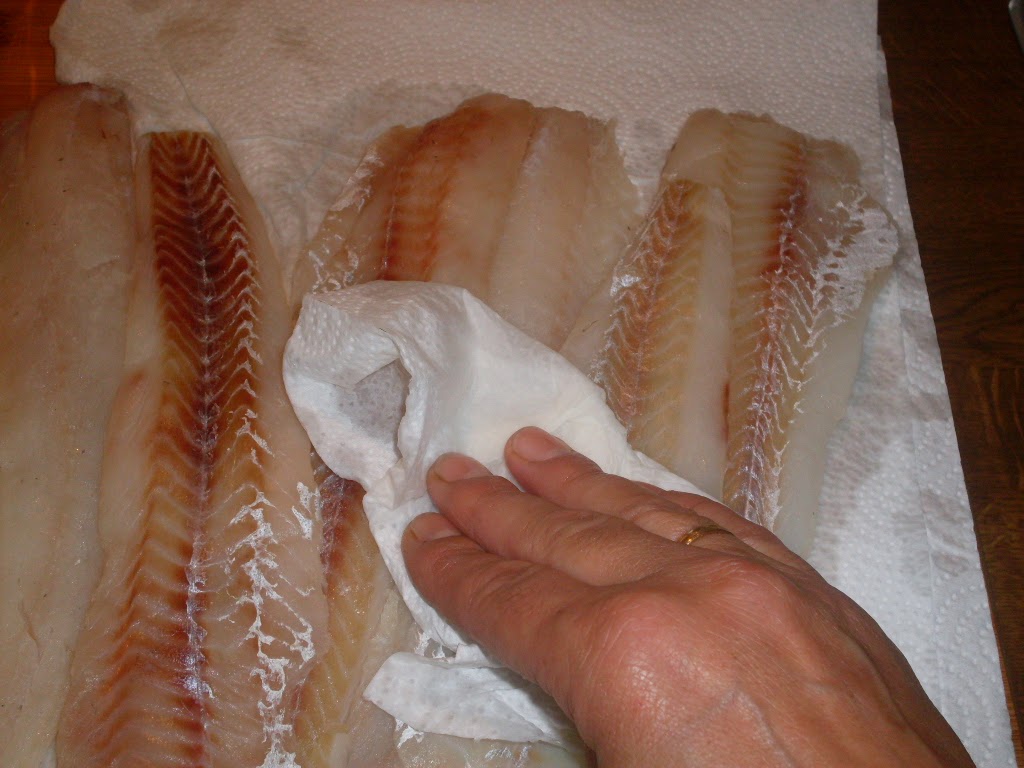 - Рибеното филе го измивам добре и подсушавам с помощта на домакинска хартия.