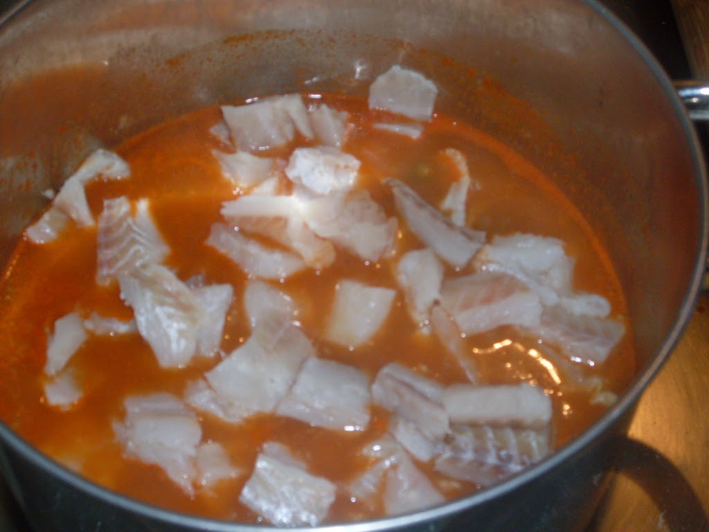 400 мл. горещ рибен бульон, кубче /може да се замени със зеленчуков/