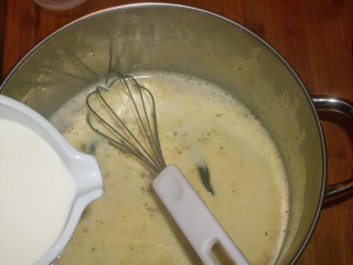 - Царевичното нишесте разтварям с 10 супени лъжици от прясното мляко. Разбърквам хубаво, така че да се получи гладка смес.