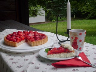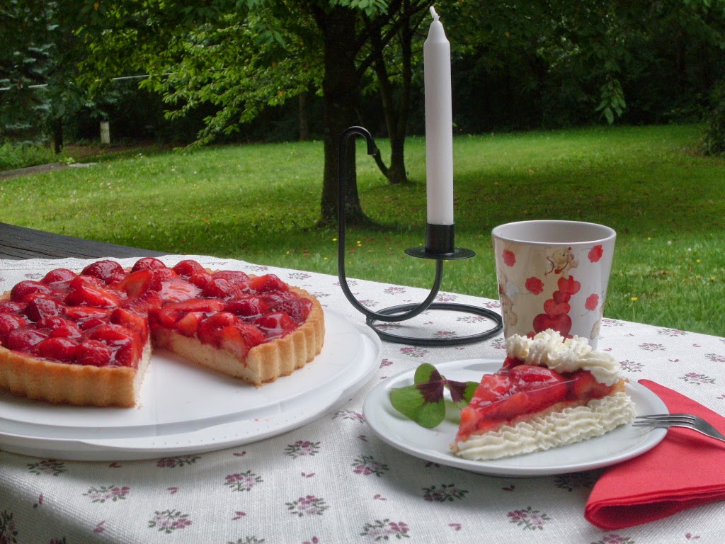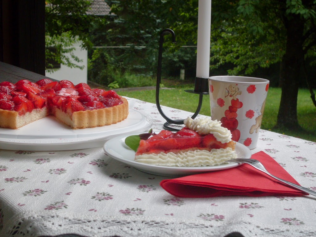 Това е една от най-бързите и вкусни плодови торти. Вкусна и ефектна! Няма начин да не се впечатлят хората, за които е правена. Научих се да я правя още в първите години от пристигането ни в Германия. А пък Ивелинка, наша приятелка, живееща отдавна тук, ми показа колко е лесна рецептата. Единственото важно нещо е подсигуряването на правилните продукти!