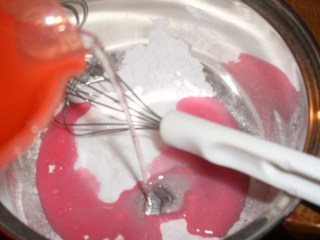 - В подходящ по размер тенджерка изсипвам прахчетата желатин, добавям захарта и заливам със студената вода. Разбивам, за да се разтворят добре.