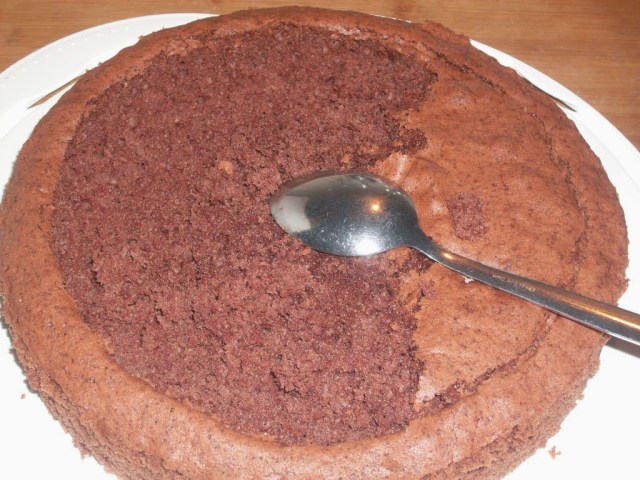 - Добре изстиналия блат издълбах с помощта на супена лъжица, като оставих ръбче по края с размер около 1 см. – цяло. Внимавам да не нараня дъното на блата.