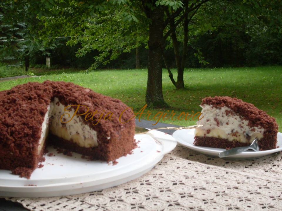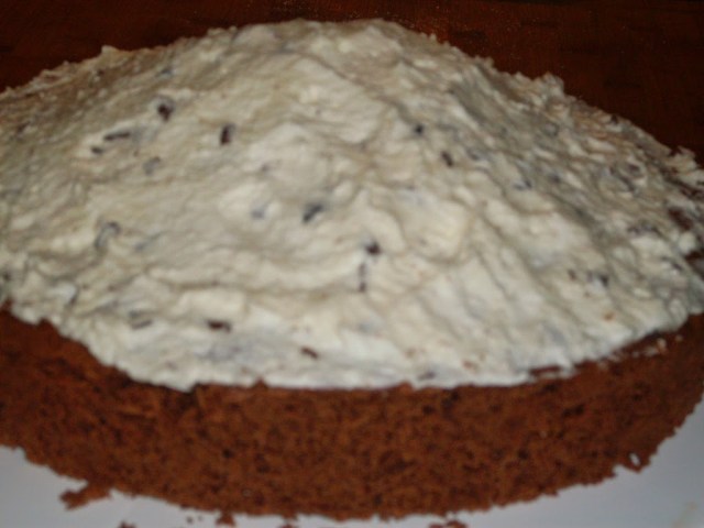 - С готовия сметанов крем заливам тортата и оформям крема с връх или да се получи нещо като купол.