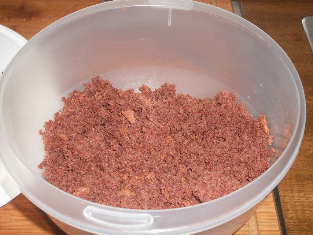 - Трохите, получили се от издълбаването, изсипах в купа и нароних на още по-малки парченца.