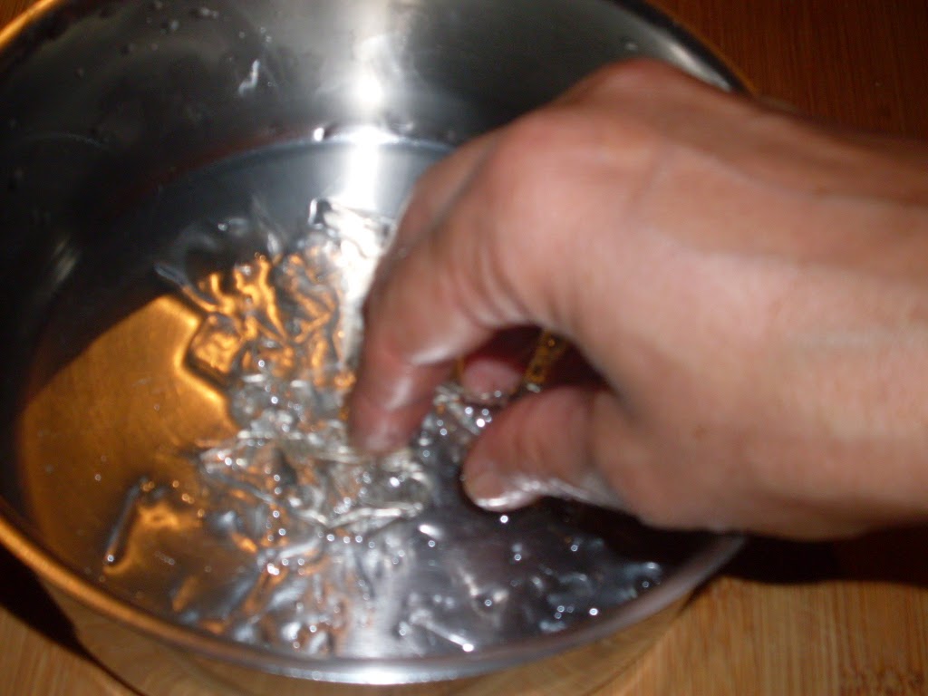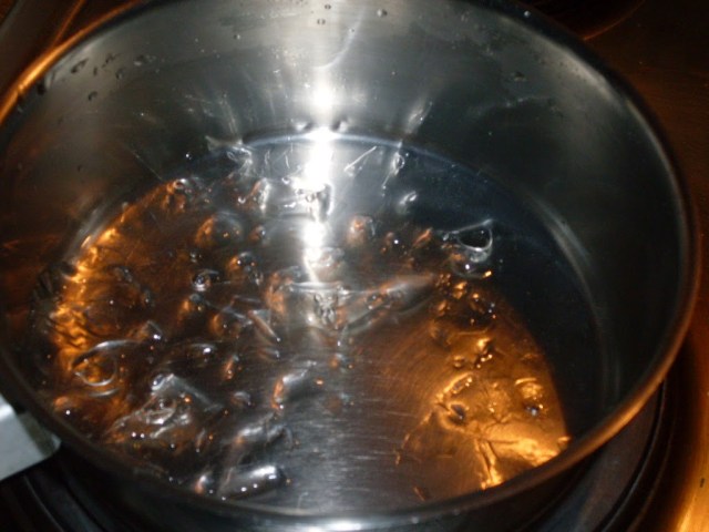 - Ако използвам желатин, двата листа желатин накисвам във около 50 мл. вода, в подходяща по размер тенджерка. За около 10 минути листата желатин набъбват и с помощта на ръката ги намачквам.