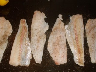 - Подсушените филета подреждам в тавичка и поливам със сока на един лимон.