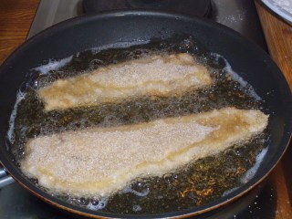 - В момента, в който се зачервят филенцата странично, това трае около 2 – 3 минути, обръщам за да се изпържат и от другата страна. На рибата не й е нужно дълго време на пържене. За около 5 минути е готова. Но това преценявате Вие, според мощността на Вашия котлон.