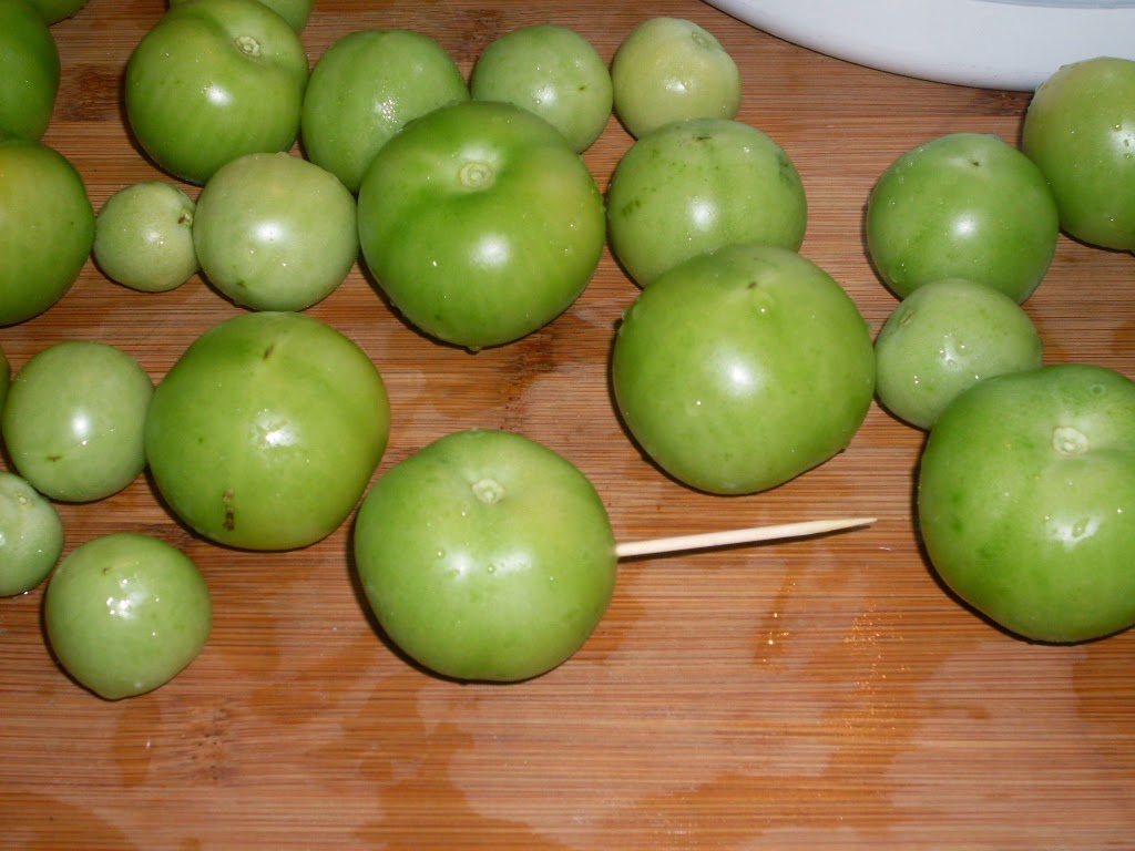 - Доматите се набождат с клечка за зъби на няколко места.