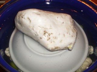 - За да притисна зеленчуците, слагам най-отгоре подходяща по размер чиния, обърната с дъното нагоре.