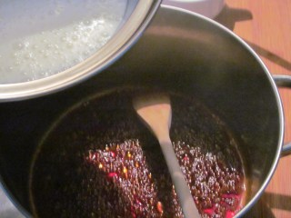 - Отделям от котлона и продължавам да разбърквам, докато съвсем малко поизстине. Около минута.