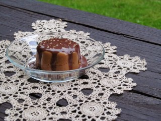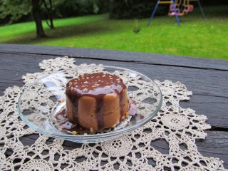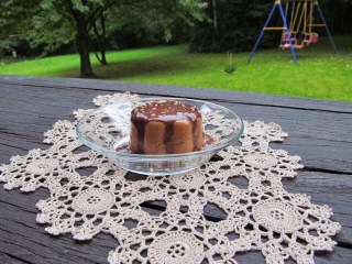 Преди сервиране, задължително отново намокрям формите със студена вода. За по-лесно отделяне на крема от стените на формите и обръщане в чинията.