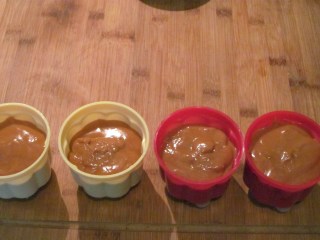 - Разпределям крема във формичките. Когато започне да се образува коричка отгоре, затварям с капачетата или покривам с фолио за свежо съхранение.