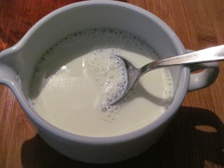 - Изсипвам прясното мляко в тенджерка, заедно с 1 с. л. от захарта и слагам на котлона да заври. Щом млякото заври, отделям от котлона.