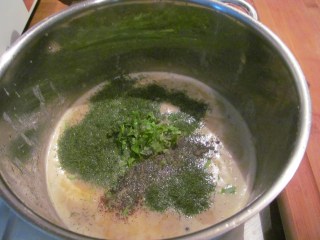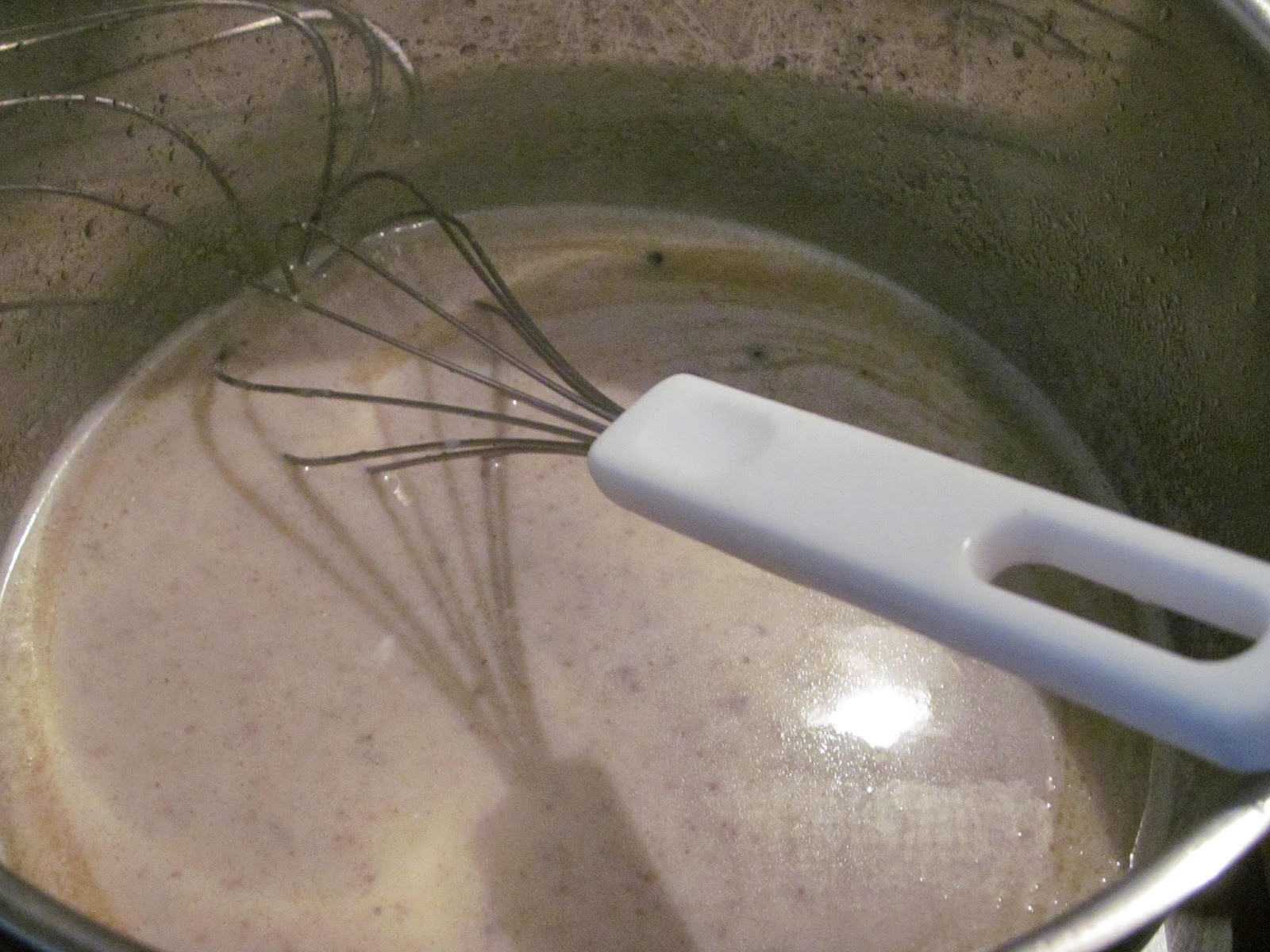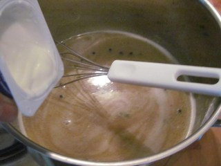 - Разбърквам киселото мляко и добавям към соса, като продължавам разбъркването на соса с тел за разбиване. Бъркането продължава почти през цялото време, защото брашното много лесно може да залепне за дъното на тенджерата. Мощността на котлона също трябва да е на минимална степен.