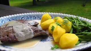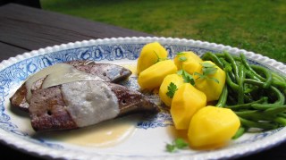 А този дроб с пикантен сос и зелен фасул за гарнитура е невероятно вкусен!