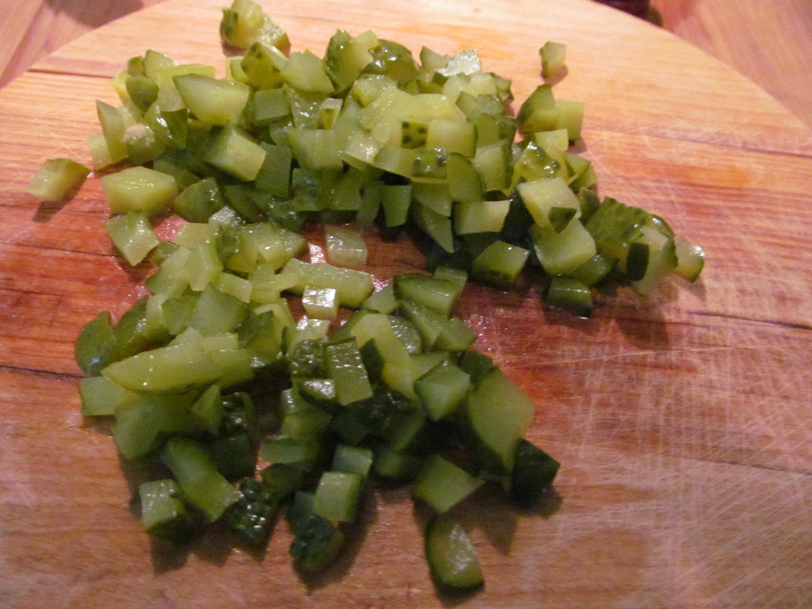 - Отделям соса от котлона и добавям киселите краставички, зелените подправки и смляния черен пипер. Пробвам на сол и, ако е нужно – добавям.