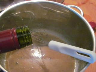 - Добавям към соса и 1/2 ч. ч. бяло вино.