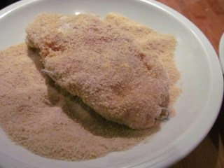 - Овалвам обилно в галетата, като притискам с ръка, за да залепне добре панировката и разбира се отново изтупвам излишното количество.