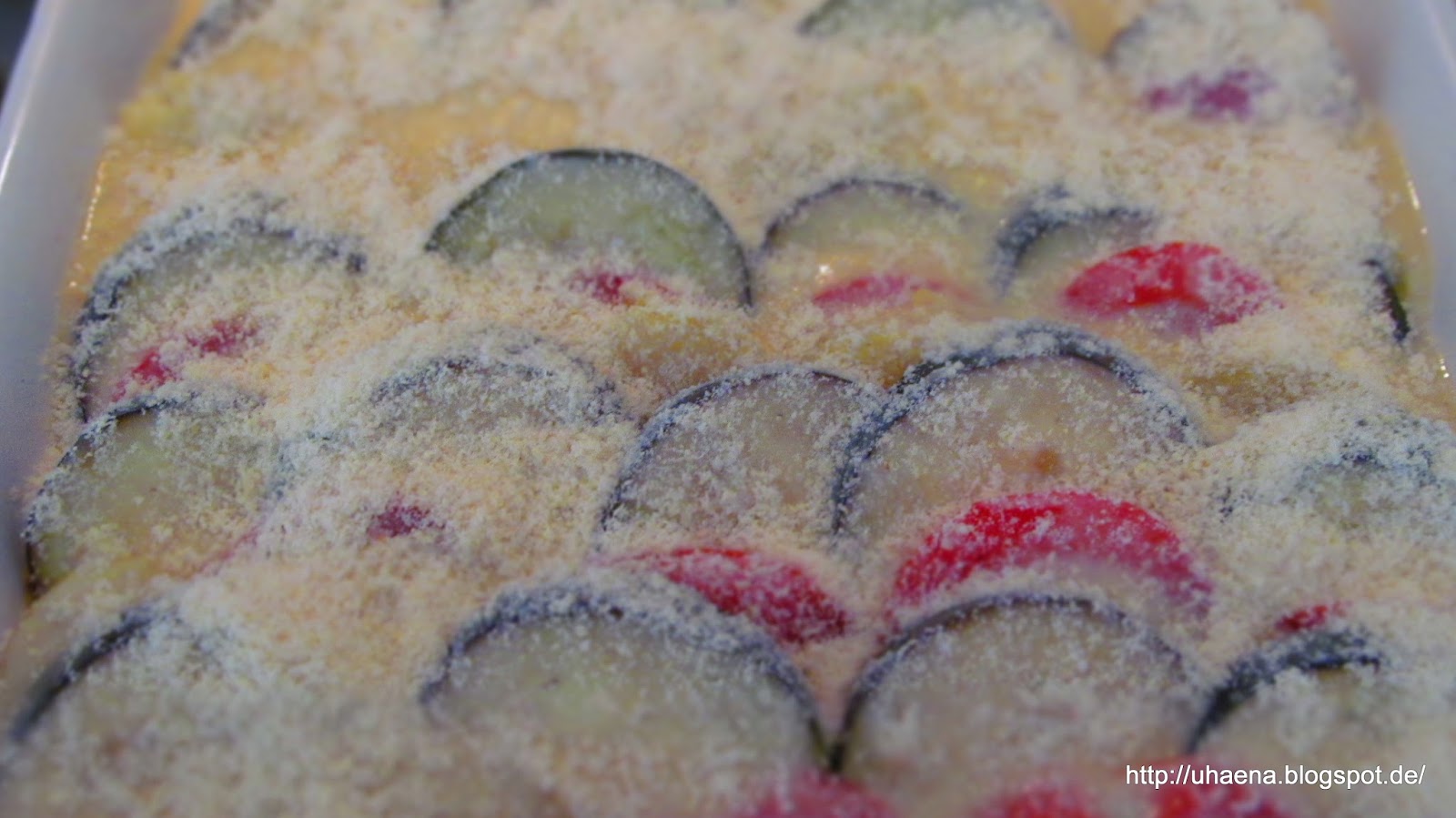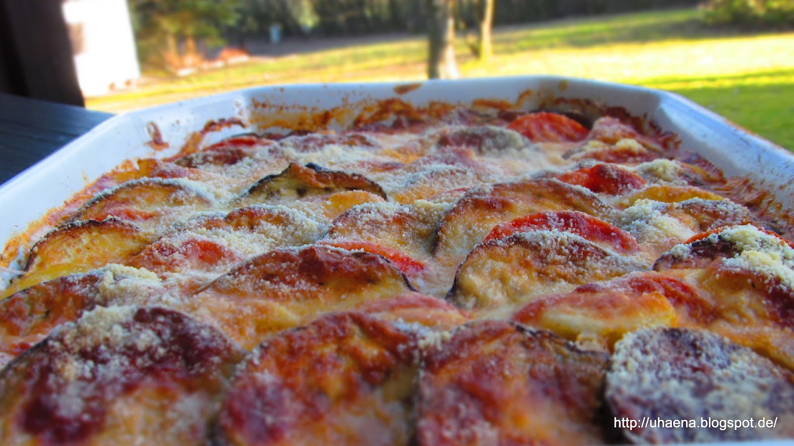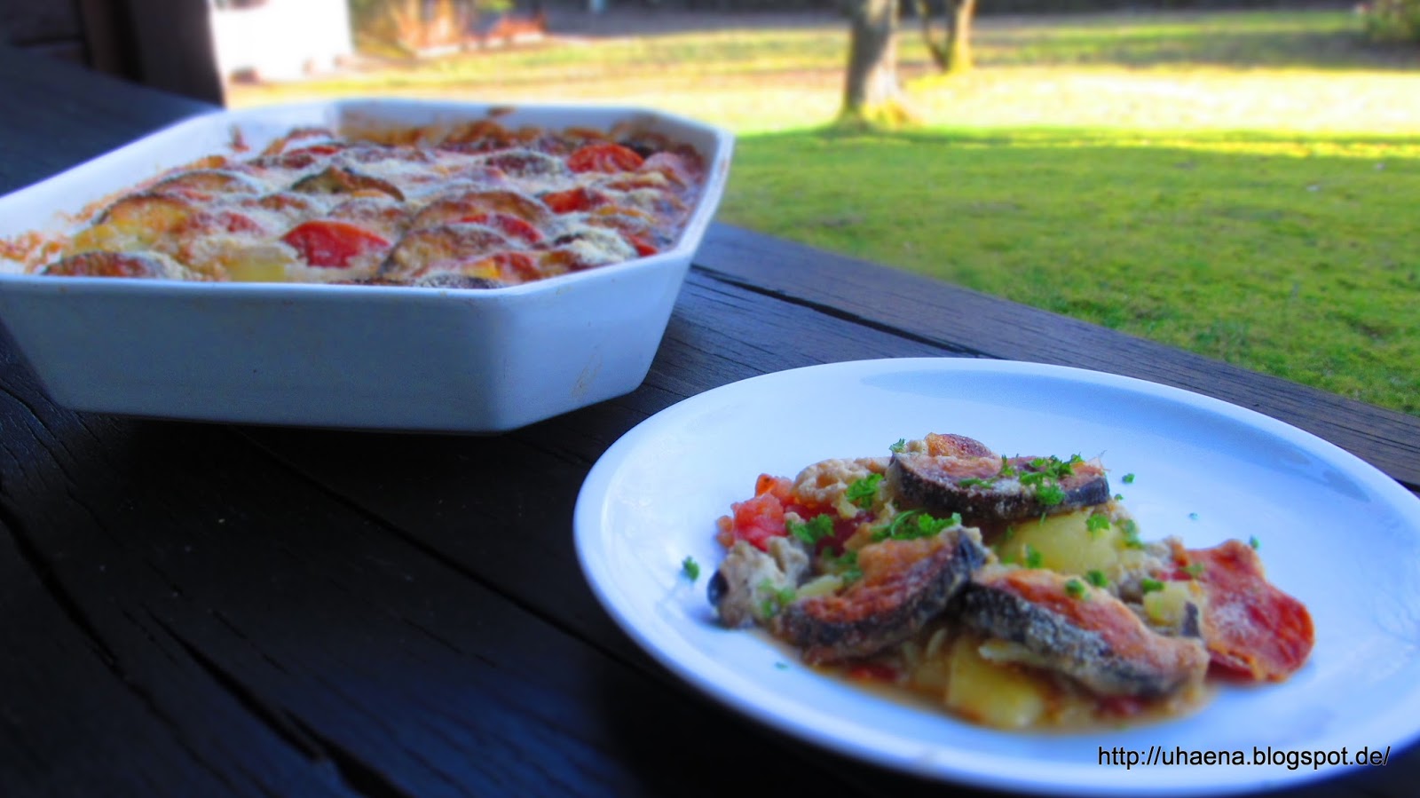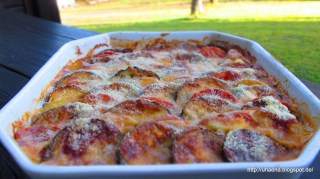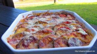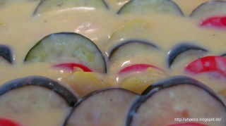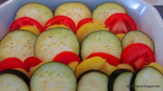 - Върху каймата подредих последователно патладжан, домат, картоф.