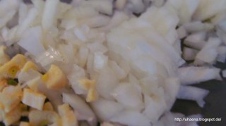 - Лука и чесъна ги обелвам и нарязвам на ситни кубчета.
