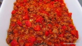 - В тавата, в която приготвих мусаката, изсипах първо каймата.