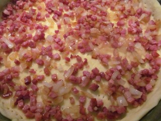 Умишлено запазих оригиналното име! Все пак и немците така го изговарят и казват, че това е френско ястие. Мисля, че и с това име повечето от вас познават тази торта с бекон. Винаги с удоволствие съм го хапвала, а пък спокойно мога да кажа, че немският Zwiebelkuchen, който вече съм представила в моето тефтерче с рецпти, не му отстъпва. Обожавам ги и двете! Разликата е в тестото. При Quiche Lorraine тестото е маслено, а при Zwiebelkuchen – с мая. Разлика има и при количеството лук. Но така или иначе те са ми фаворити. Приготвям и ги ям винаги с удоволствие. Нооооо…. задължително с чаша вино! Понякога може да се поднесе като предястие, може да бъде и основно ястие, а пък за нас – идеално мезе за хубаво вино!