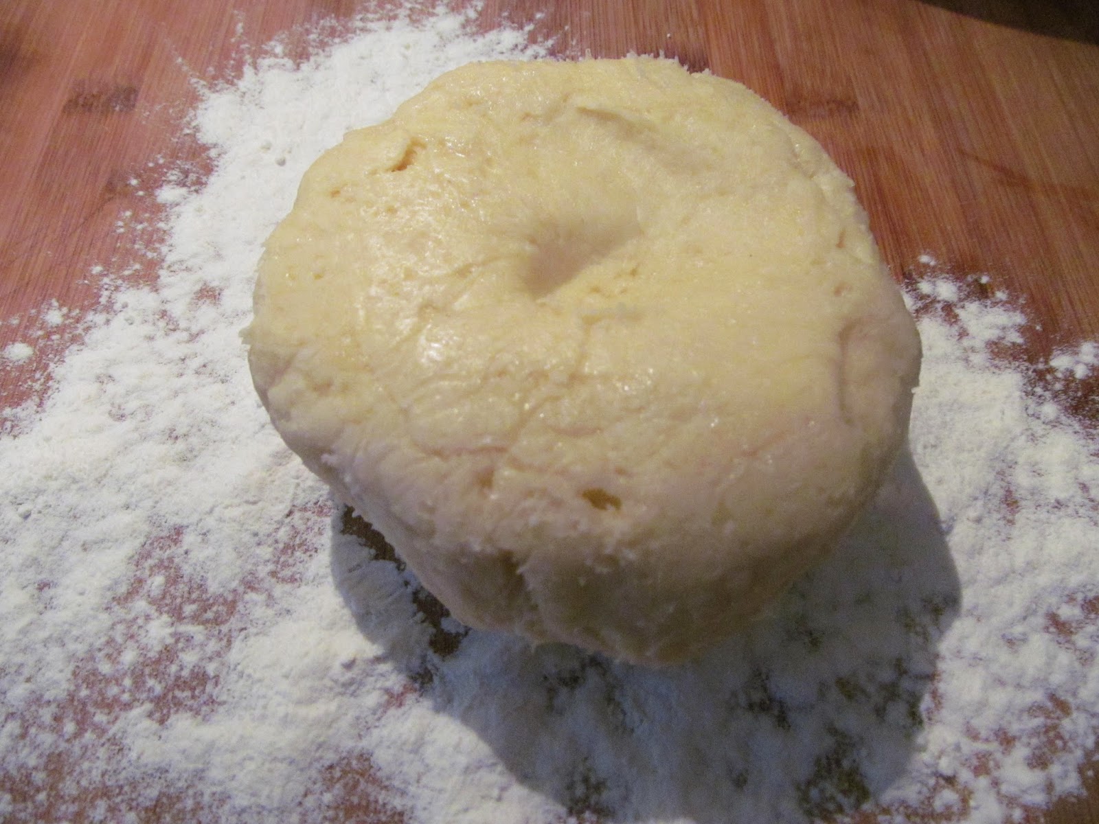 - Когато тестото е достатъчно време отлежало в хладилника, го изваждам върху набрашнена плоскост, омесвам за съвсем кратко.