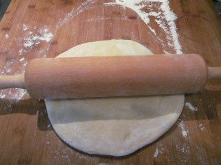 - С помощта на дървена точилка, разстилам тестото на кръгла кора, която да е приблизително с 2 см. по-голяма от дъното на формичката.
