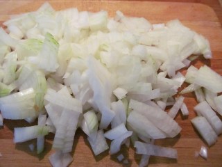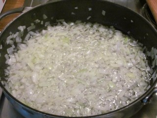 - Добавям лука и запържвам само до омекването му и получаването на прозрачен цвят.