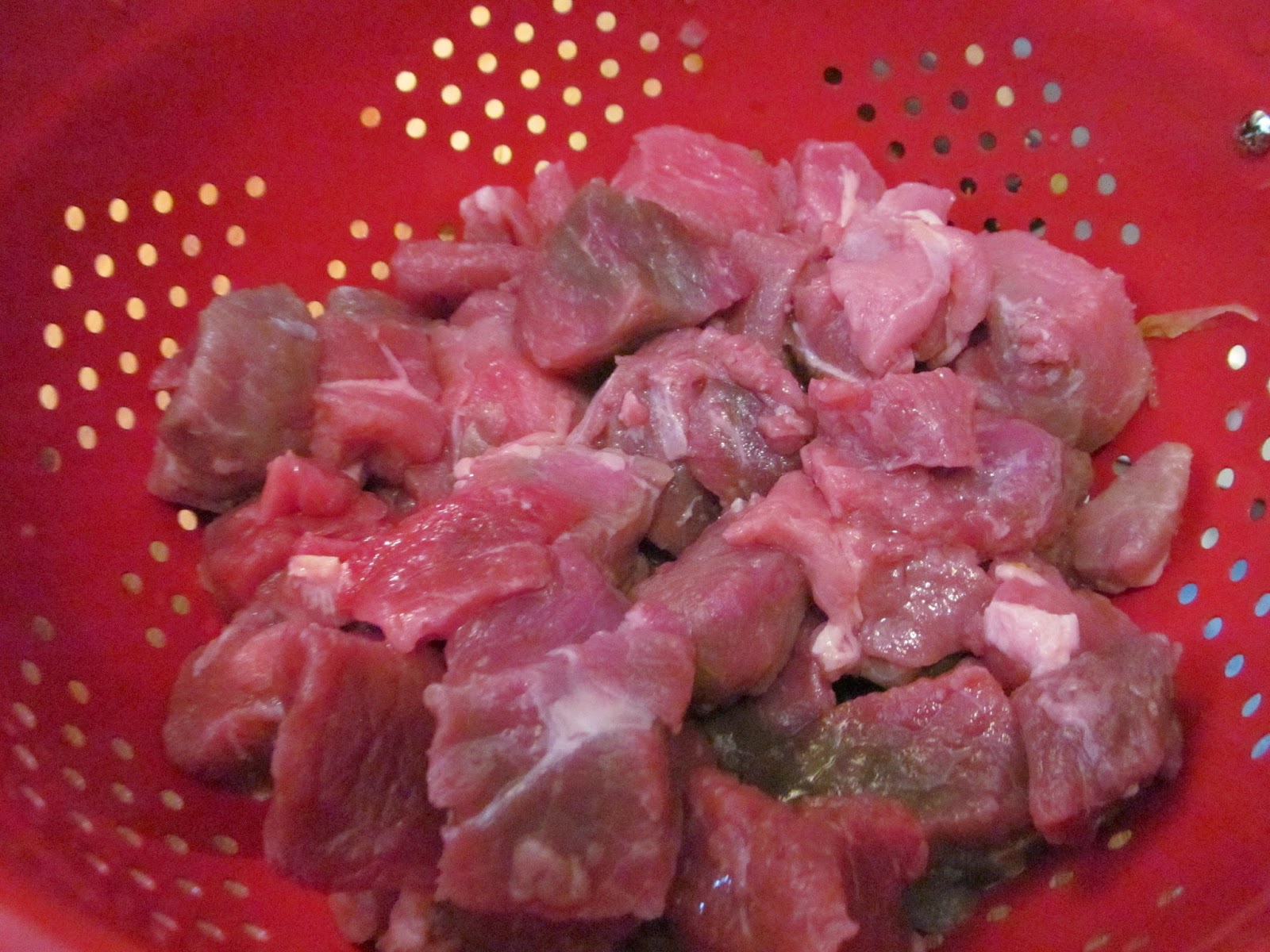 500 гр. свинско месо /също използвах за готвене, то е винаги предварително нарязано на кубчета, но е по-добре да е цяло парче от бута или врата/