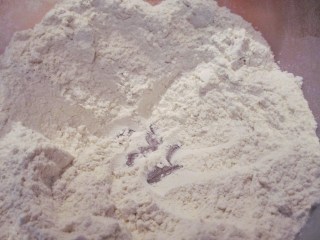 - За този хляб не пресявам брашното. Измервам го с мерителна каничка и изсипвам в подходяща купа за месене. Не използвам купата от миксера, защото не ми е удобно да доомесвам после на ръка в нея. Добавям солта към него и разбърквам, така че солта да се разпредели навсякъде. Правя кладенче в средата.