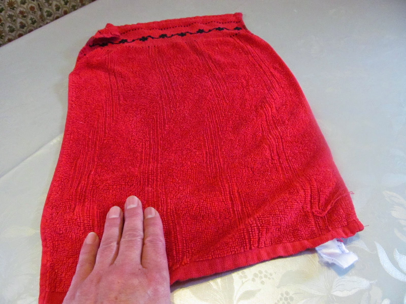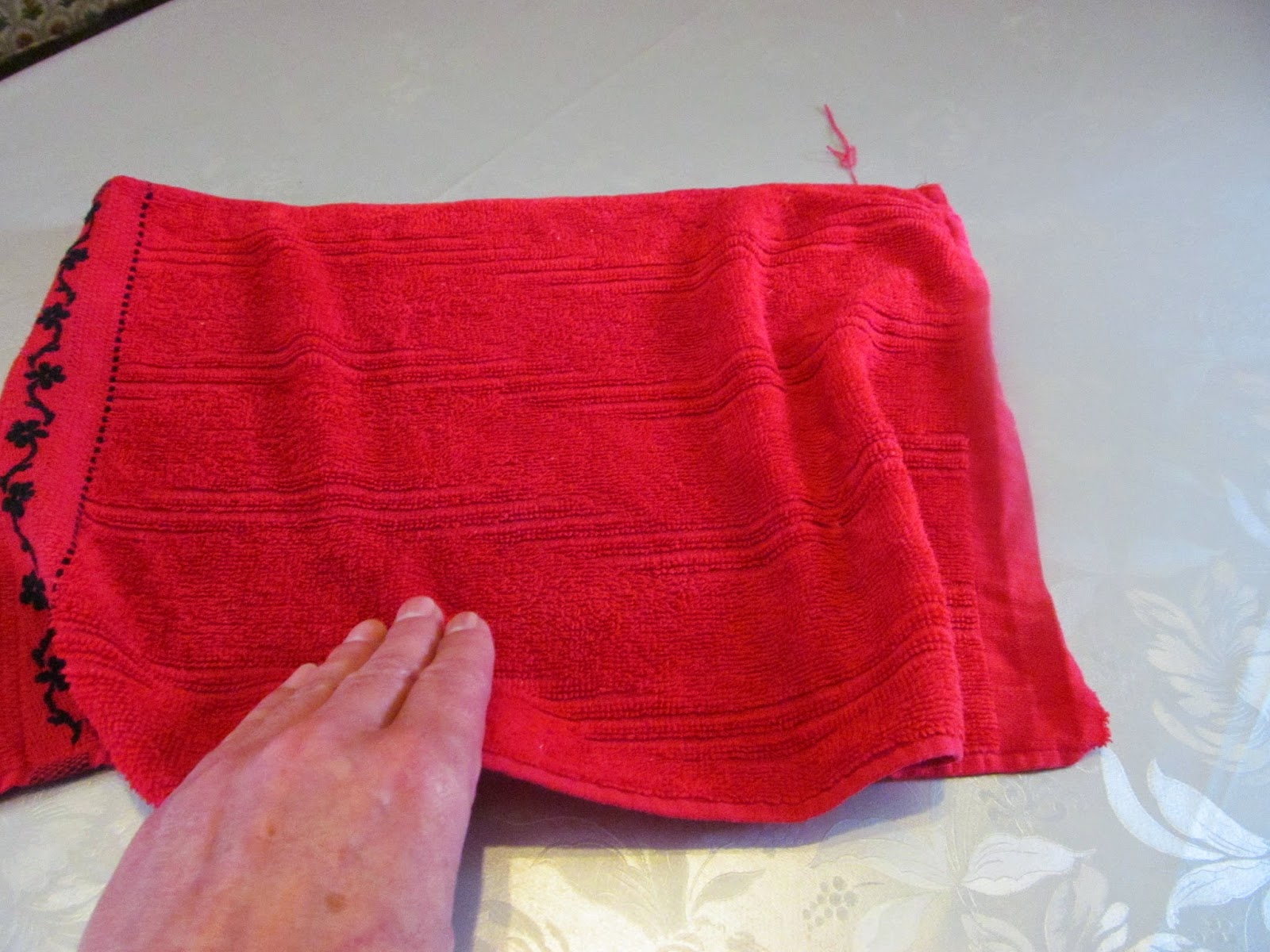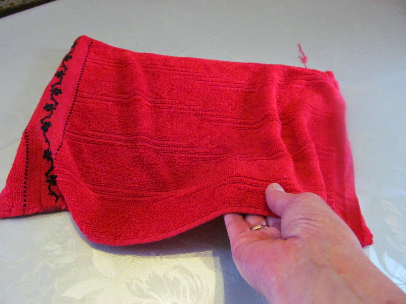 • Както виждате и от снимките, започнах да завъртам кърпата от широката част, а сега премествам ръцете в тясната част на кърпата.