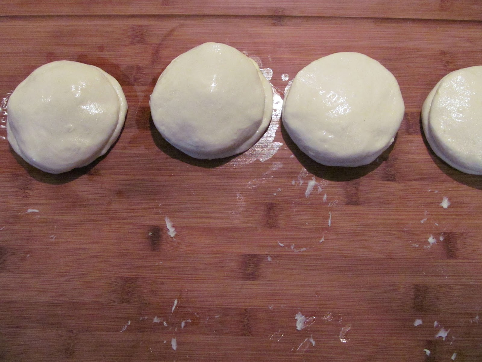 • Всяко топче притискам леко с върха на пръстите, за да стане сплескано и е горе-долу с размер – чинийка за кафе.
