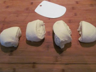 • Разделям тестото на четири, горе-долу еднакви по размер части.