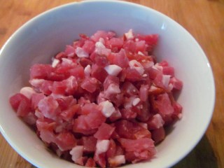 • Нараязвам пушения бекон на възможно най-ситните кубчета, а ако намерите готово нарязан в магазина – още по-добре. Това е една основна съставка в немската кухня и поради тази причина може да се намери във всеки супермаркет.
