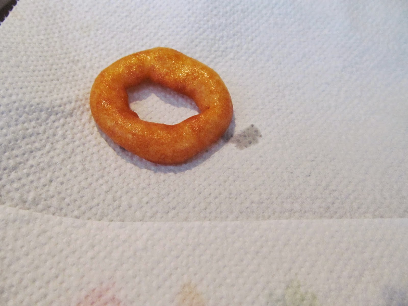 - Готовите лучени кръгчета изваждам върху домакинска хартия, за да се отцедят от излишната мазнина.