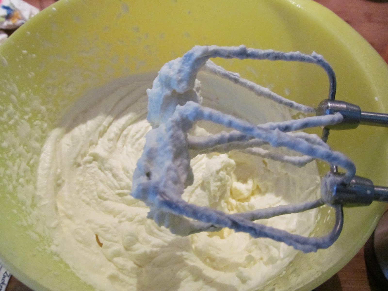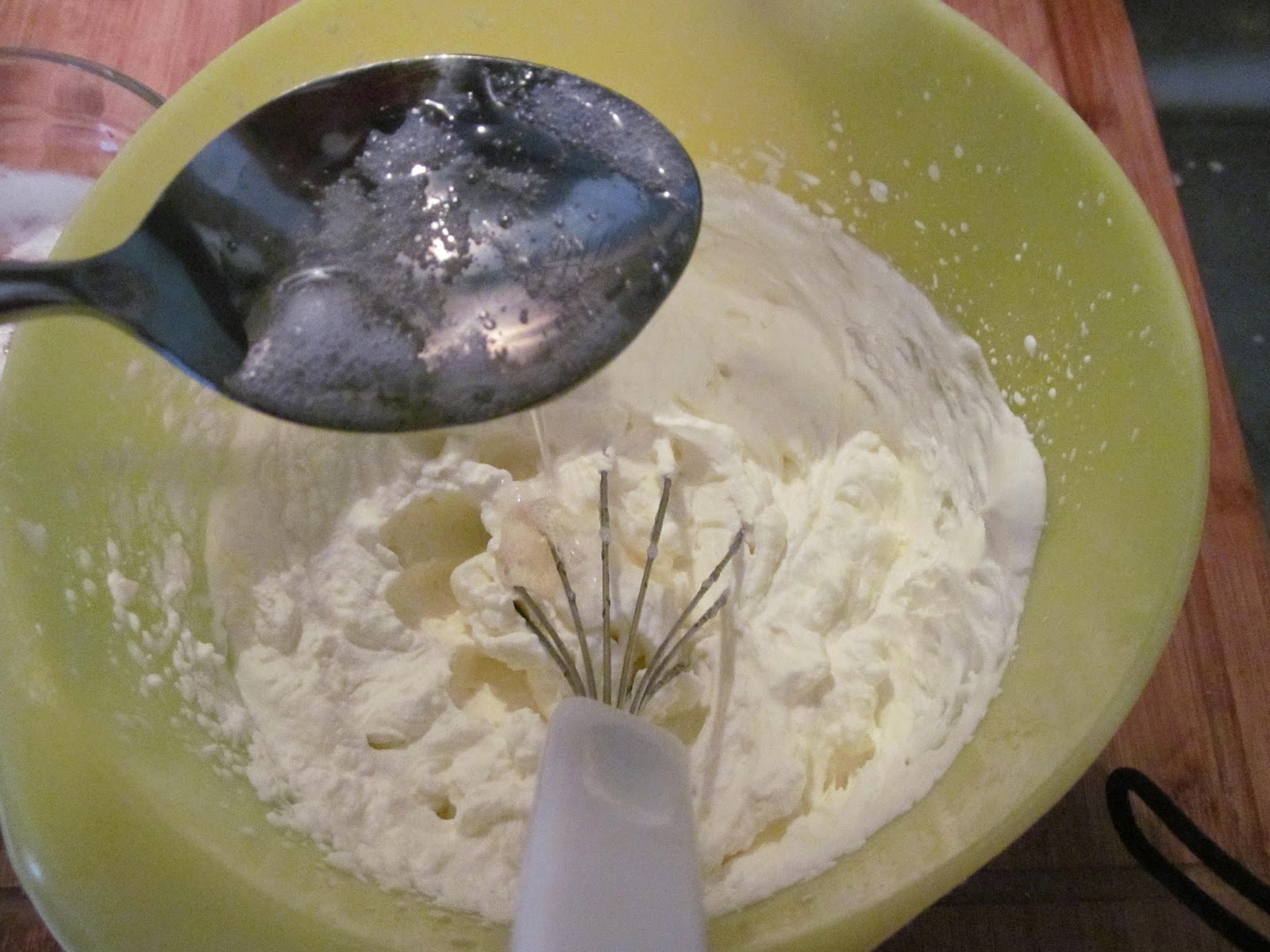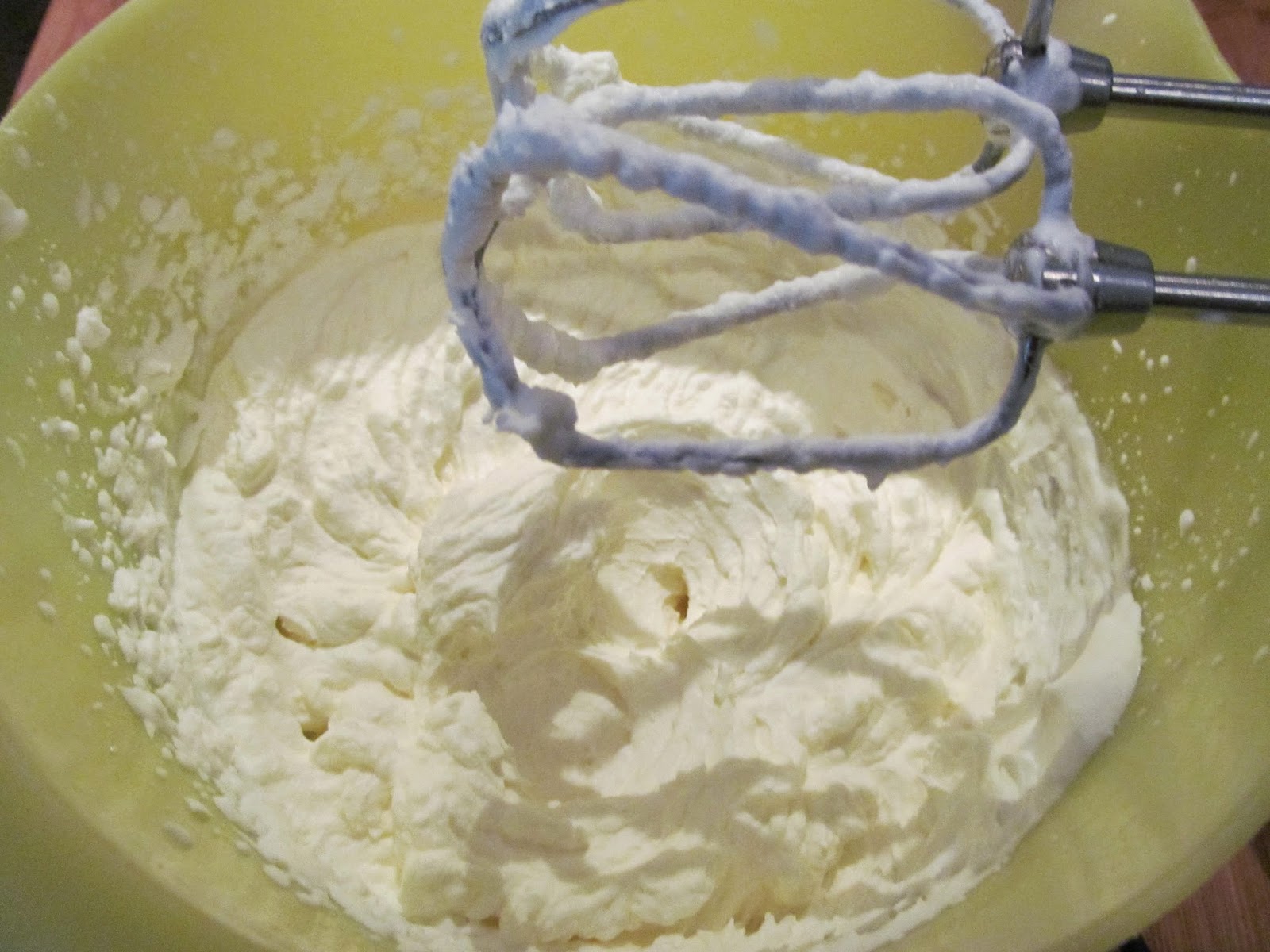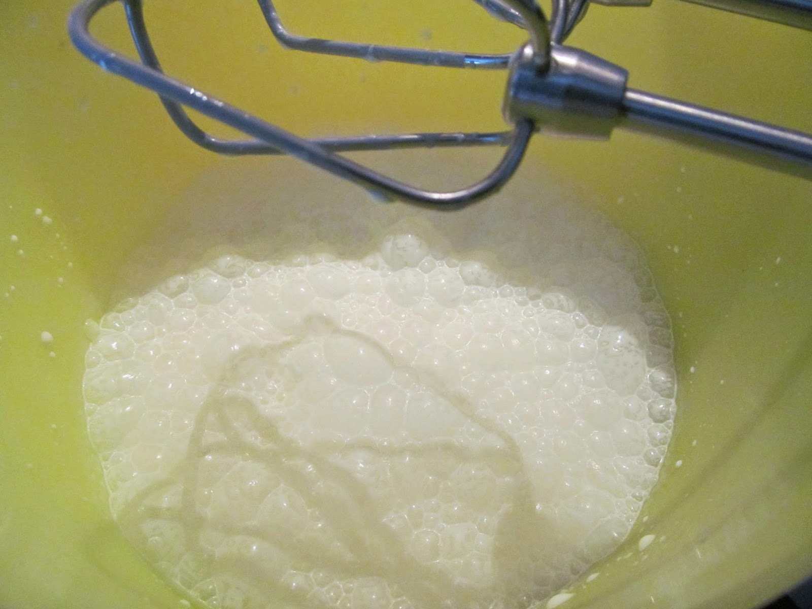 - Разбиването е на максимална степен на миксера, минимум 5 минути или докато накрайниците започнат да оставят черти, добавянето на ваниловата захар е бавно и по малко.