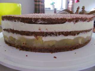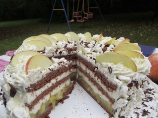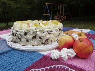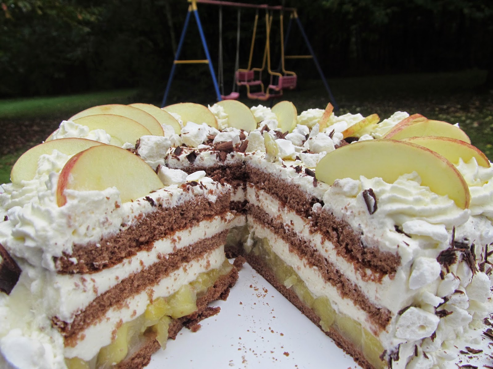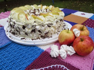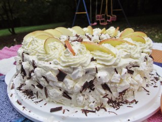 Не мога да не спазя традицията! Торта за рожден ден на член на семейството! А още повече – за най-малкия член на семейството. Даниел навършва днес 2 годинки! Със сигурност, ако си бях в България – тортата бих направила със захарен фондан и фигурки, но… аз съм далеч и ще поздравя Дани само с торта на снимка. Но пък съм я съобразила с неговите любими неща – ябълките и разбитата сметана. А ние ще си я хапнем за негово здраве и му пожелаваме да расте здрав и силен!
