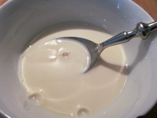 - В малка купичка смесвам царевичното нишесте с 50 мл. от ябълковия сок. Разбърквам, докато нишестето се разтвори.