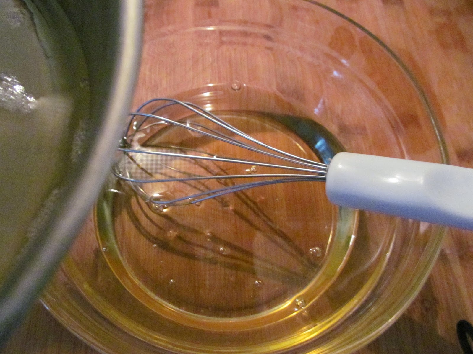 - Премествам желатина от котлона и като го разбърквам постоянно, добавям към него 50 мл. от сиропа от бъз. Така уравновесявам температурата на желатина и сиропа.