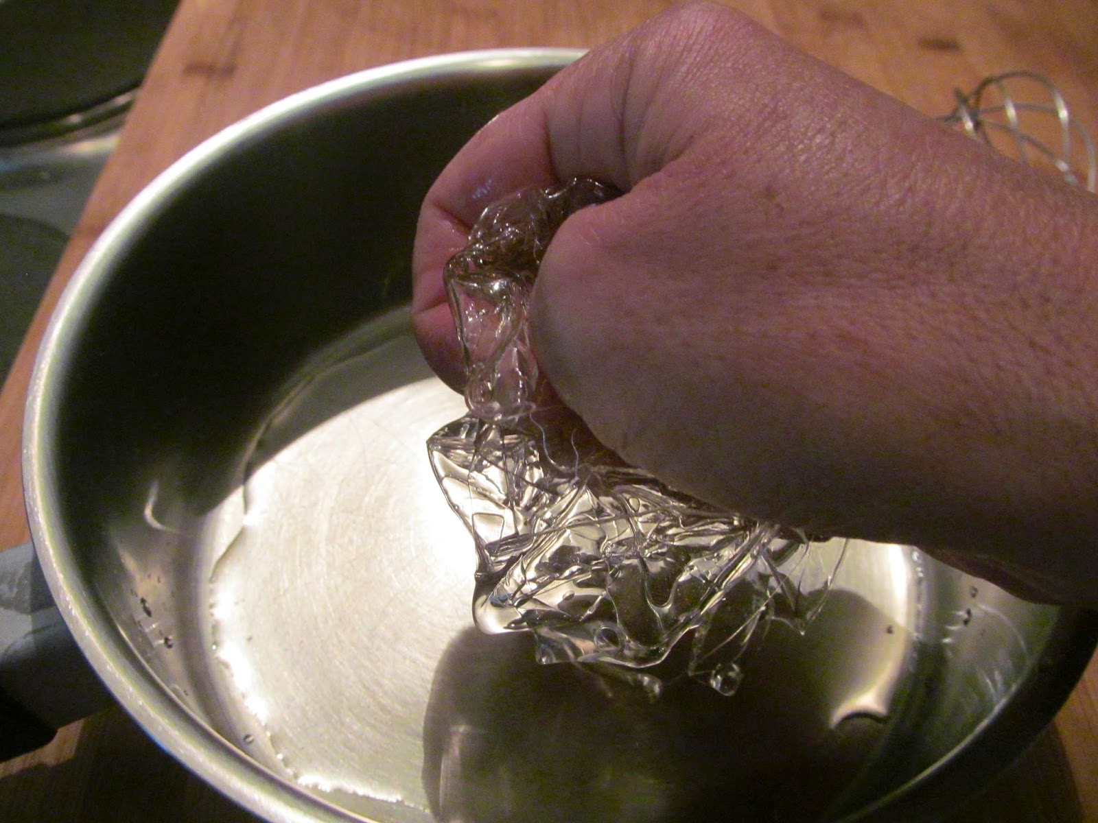 - Слагам на горещия котлон и за около 1 минута, желатинът се е разтворил, но внимавам да не завира.