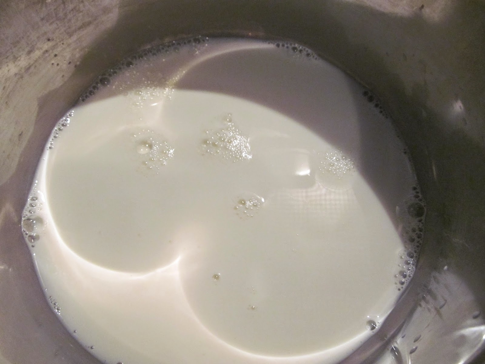 - Останалите 300 мл. от прясното мляко, сварявам в подходяща тенджерка.