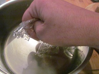 - Накисвам листата желатин с малко студена вода, колкото да ги покрие, като листата трябва да са предварително разделени.